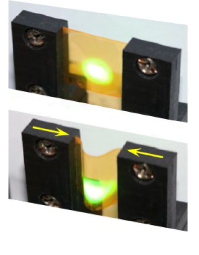 Disorder is emerging as a strategy for fabricating random laser sources with very promising materials, like perovskites, for which standard laser cavities are not effective, or too expensive. We need however different fabrication protocols and technologies for reducing the laser threshold and controlling its emission. Here we demonstrate an effectively solvent-engineered method for high-quality perovskite thin films on the flexible polyimide substrate. The fractal perovskite thin films exhibit excellent optical properties at room temperature and easily achieve lasing action without any laser cavity above room temperature with a low pumping threshold. The lasing action is also observed in curved perovskite thin films on the flexible substrates. The lasing threshold can be further reduced by increasing the local curvature, which modifies the scattering strengths of the bent thin film. We also show that the curved perovskite lasers are extremely robust with respect to repeated deformations. Because of the low spatial coherence, these curved random laser devices are efficient and durable speckle-free light sources for applications in spectroscopy, bio-imaging, and illumination.